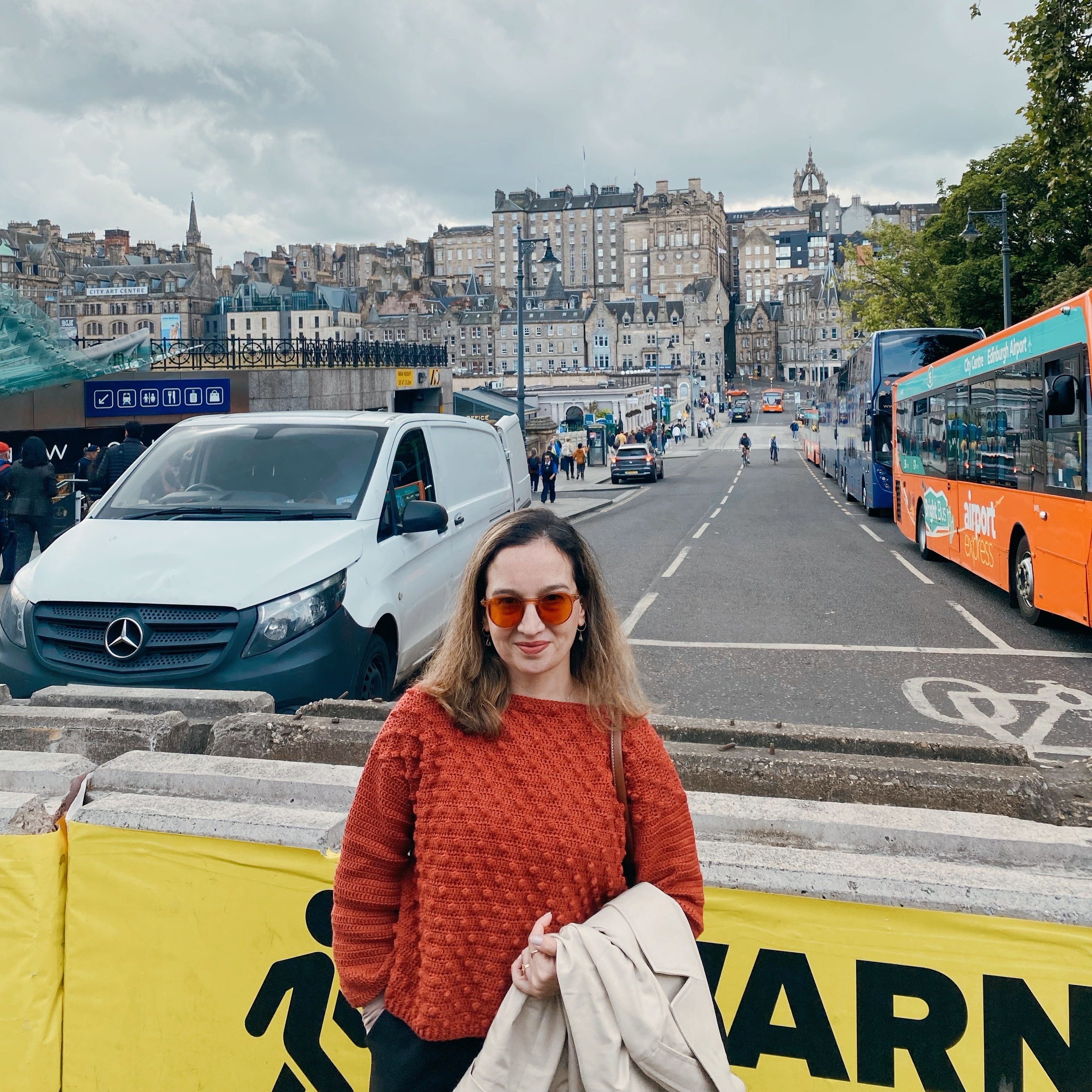 A Blusa Verona se mostrou perfeita para essa jornada: um look de crochê feminino, confortável e ao mesmo tempo elegante, ideal para longas caminhadas explorando os castelos, ruas de pedra e a atmosfera única de Edimburgo. O toque artesanal da peça combinou com a energia da cidade, conhecida por sua tradição literária, seu charme clássico e sua intensidade cultural.